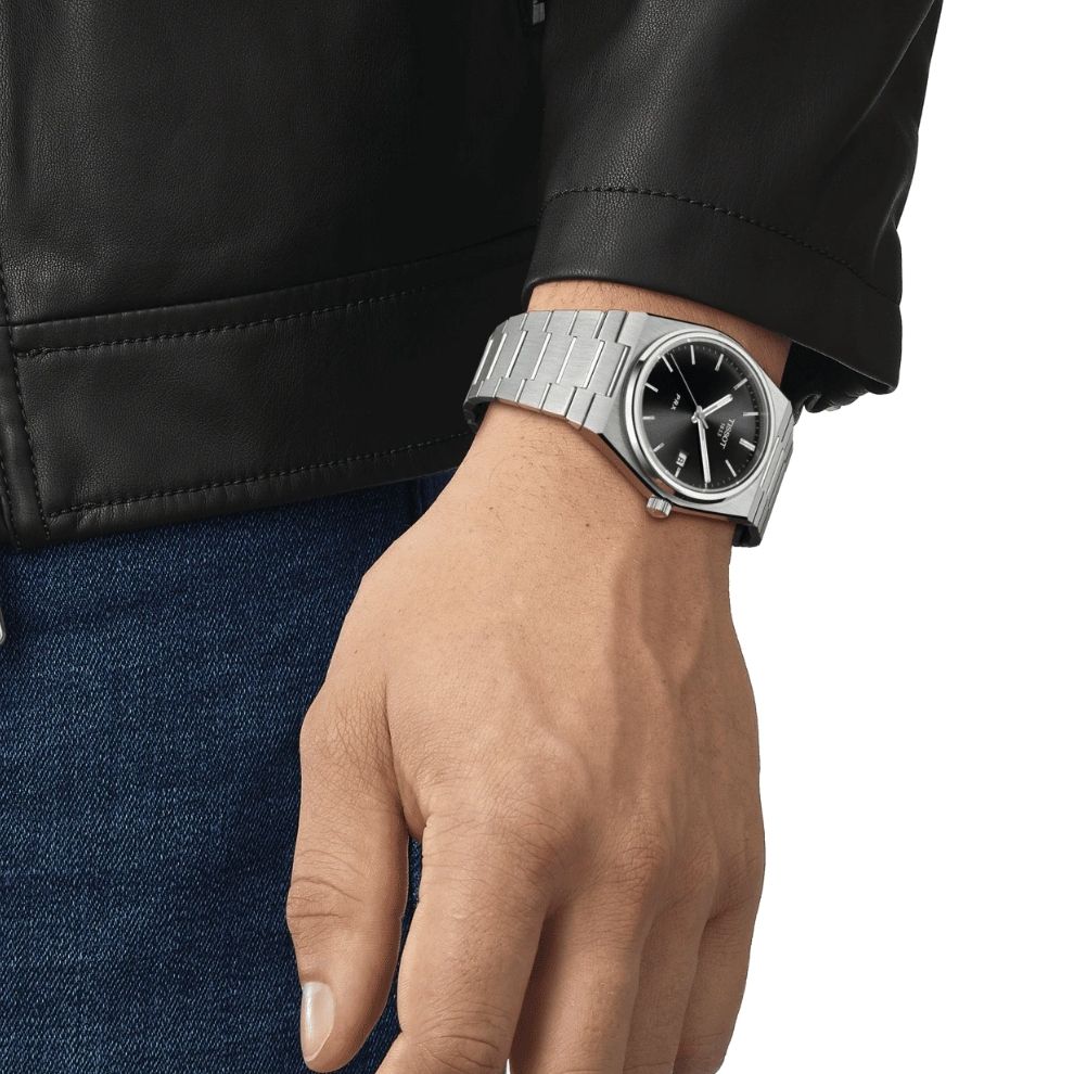 Nel 1978 Tissot creò un modello al quarzo, caratterizzato da una cassa sottile, indici stretti e un bracciale in acciaio. La sua ampia ansa orizzontale, tipica dell'epoca, era perfettamente integrata nella cassa piatta a forma di tonneau. Pochi anni dopo, Tissot ha registrato il nome PRX. "PR" sta per "preciso" e "robusto". La "X" sta per il numero romano dieci e per la pressione di 10 bar che l'orologio è in grado di sopportare. Nel 2021 Tissot ha presentato il PRX 40205, È una versione moderna del modello precedente. La cassa in acciaio inossidabile 316L del Tissot PRX 40205 ha un diametro di 40 mm.