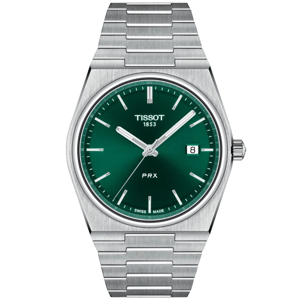 Nel 1978 Tissot creò un modello al quarzo, caratterizzato da una cassa sottile, indici stretti e un bracciale in acciaio. La sua ampia ansa orizzontale, tipica dell'epoca, era perfettamente integrata nella cassa piatta a forma di tonneau. Pochi anni dopo, Tissot ha registrato il nome PRX. "PR" sta per "preciso" e "robusto". La "X" sta per il numero romano dieci e per la pressione di 10 bar che l'orologio è in grado di sopportare. Nel 2021 Tissot ha presentato il PRX 40205, È una versione moderna del modello precedente. La cassa in acciaio inossidabile 316L del Tissot PRX 40205 ha un diametro di 40 mm.