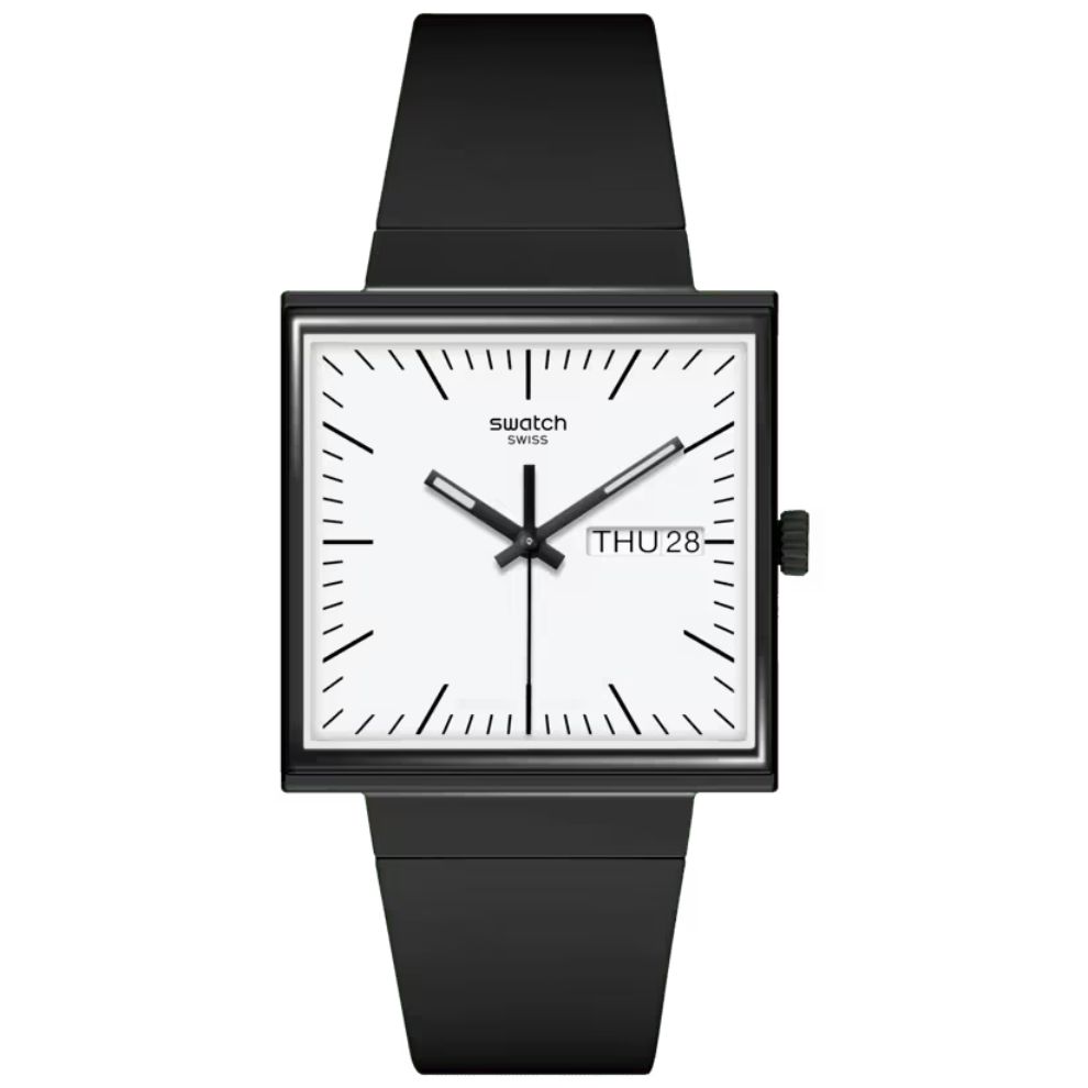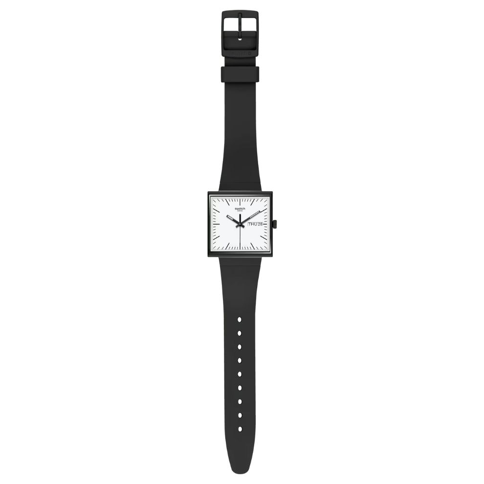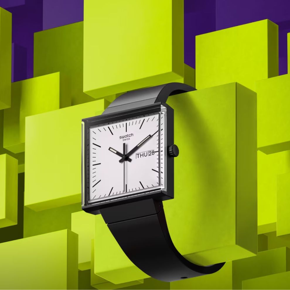 La cassa quadrata dell'orologio BIOCERAMIC è caratterizzata da un vetro biosurced edge-to-edge che permette una visione laterale delle lancette dell'orologio. Il quadrante quadrato è dotato di lancette che si illuminano al buio e a ore 3 di una finestra con la data del giorno. Il quadrante è completato da un cinturino integrato in materiale biosurced. Un copribatteria stampato sul retro raffigura uno dei quadranti che hanno ispirato questo orologio quadrato nero.