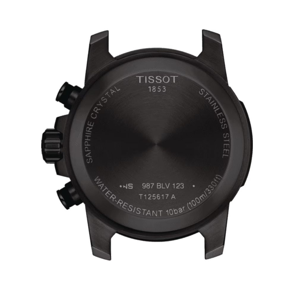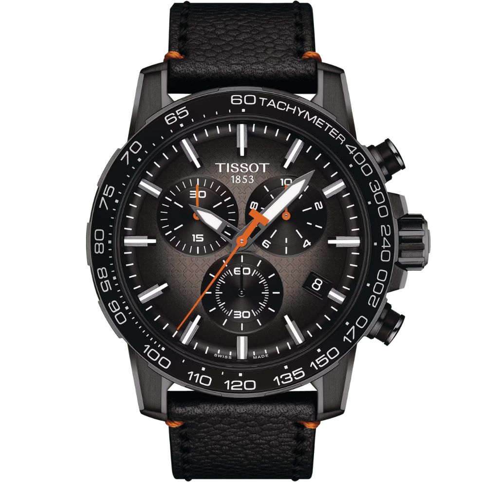 Il Tissot Supersport Chrono è un orologio ideale per gli uomini sportivi. Questo cronografo da 45,5 mm presenta un movimento al quarzo di fabbricazione svizzera. Il suo quadrante riprende il motivo dell'emblematico canestro da basket. La cassa in acciaio inossidabile PVD nero è sormontata da una lunetta con scala tachimetrica e montata su un cinturino in pelle con cuciture arancioni.
