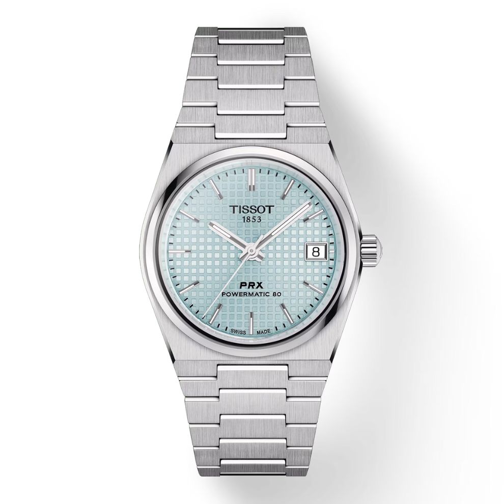 Il Tissot PRX 35mm Powermatic 80, l'estetica senza tempo incontra la tecnologia contemporanea. Questo orologio da 35 mm presenta una cassa in acciaio di alta qualità e un vivace quadrante blu ghiaccio. Il caratteristico design del quadrante con lavorazione waffle aggiunge una raffinatezza unica a questo modello automatico. Dotato di una resistenza all'acqua fino a 100 metri e di una spirale Nivachron™, il PRX blu ghiaccio è una scelta unica per gli appassionati di orologi pratici ed eleganti. Il bracciale in acciaio satinato, completo di chiusura déployante a tripla lama in acciaio, assicura un confort impeccabile.