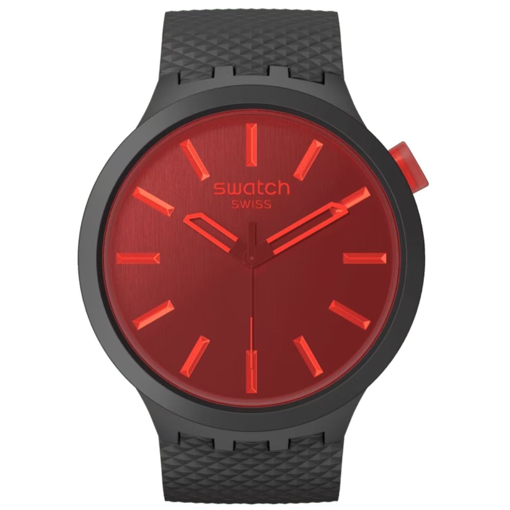 Questo orologio oversize biosourced nero e rosso si distingue per la speciale tecnica di incisione che conferisce al quadrante nero la sua caratteristica lucentezza. La cassa nera opaca, il cinturino biosourced e i passanti completano il look di grande impatto.