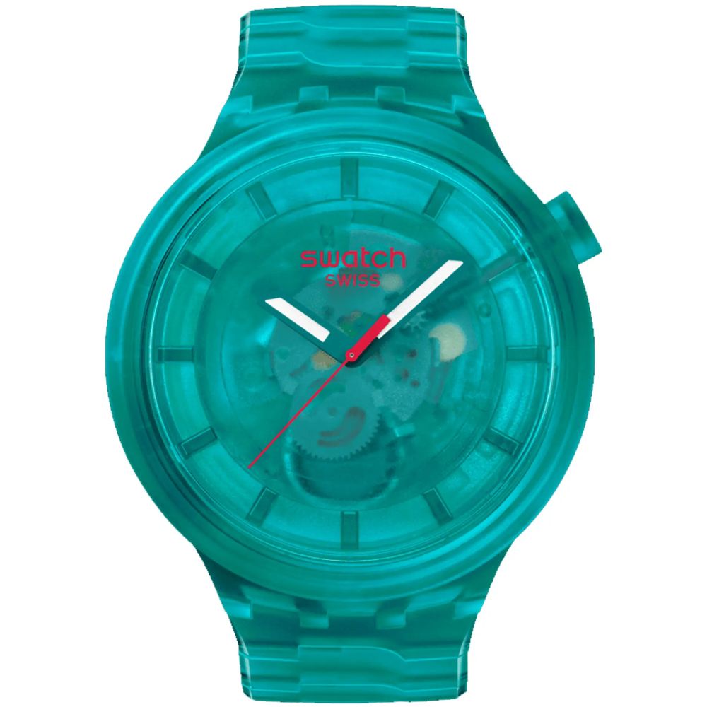 Questo orologio oversize turchese sfoggia un look completamente trasparente, dalla cassa, al quadrante, alla lunetta al bracciale biosourced con fibbia a farfalla. Il quadrante turchese trasparente biosourced offre una visione del movimento, mentre le lancette delle ore e dei minuti turchesi fosforescenti e la lancetta dei secondi rosa a contrasto indicano l'ora sotto il vetro biosourced.