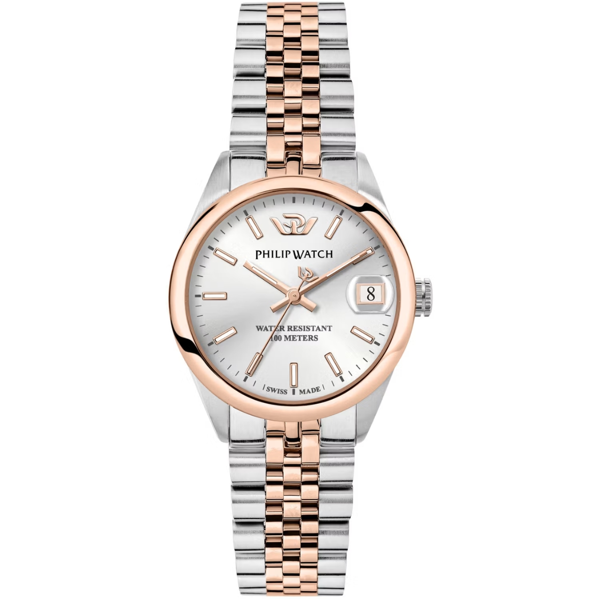 OROLOGIO PHILIP WATCH CARIBE - R8253597620 - Philip Watch experience: Urban, Genere : Donna, Materiale e finitura cassa: Acciaio, Misura cassa: 31mm, Spessore cassa: 9,15, Finitura cassa: Lucido, Satinato, Colore cassa: Silver, Rose-gold, Vetro: Vetro zaffiro antiriflesso, Materiale cinturino: metallo, Colore cinturino: Silver, Rose Gold, Chiusura: Fibbia diver c, Pulsanti e blocco di sicurezza, Swiss made: Sì, Water resistant: 10 atm, Garanzia: Ufficiale 2 anni Philip Watch, Confezione: Originale Philip Watch