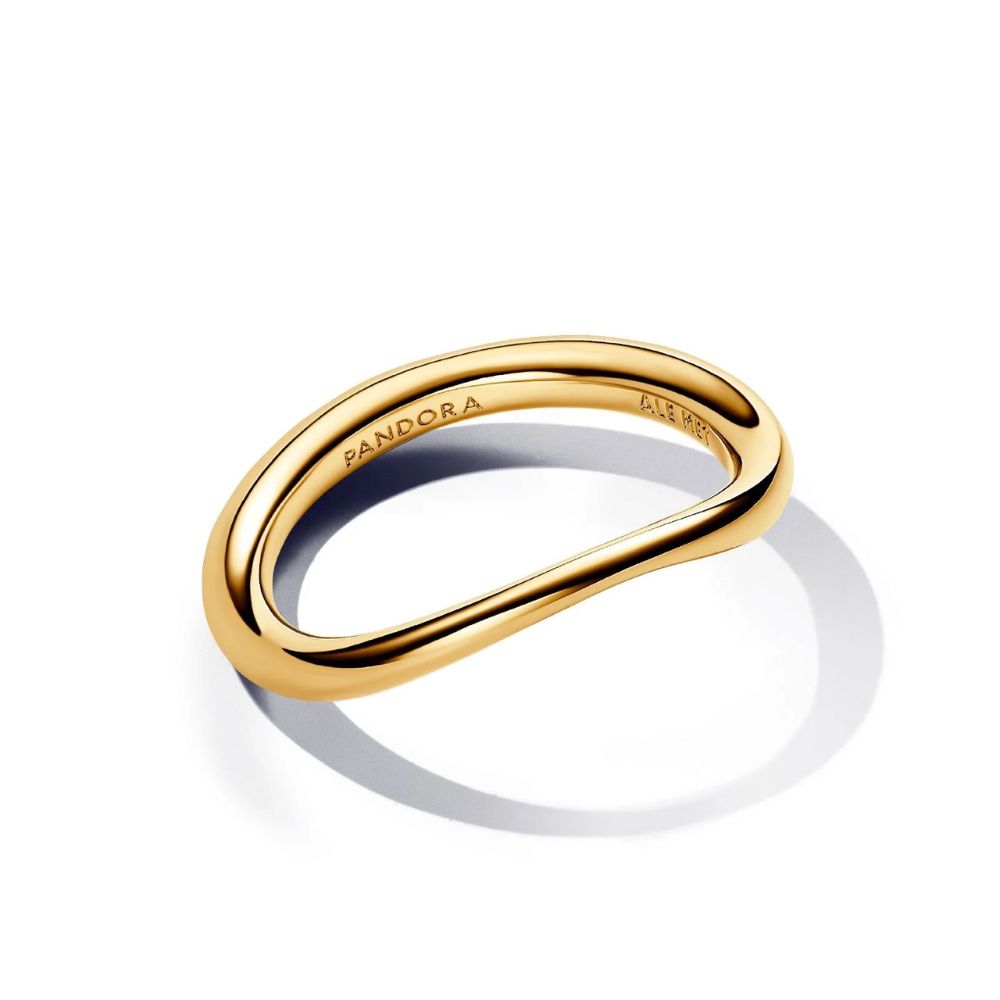 Anello della collezione Pandora Essence da donna. Colore: oro. L'anello è realizzato nell'esclusiva lega metallica con placcatura oro 14 K a fascia sottile ispirato alle forme della natura