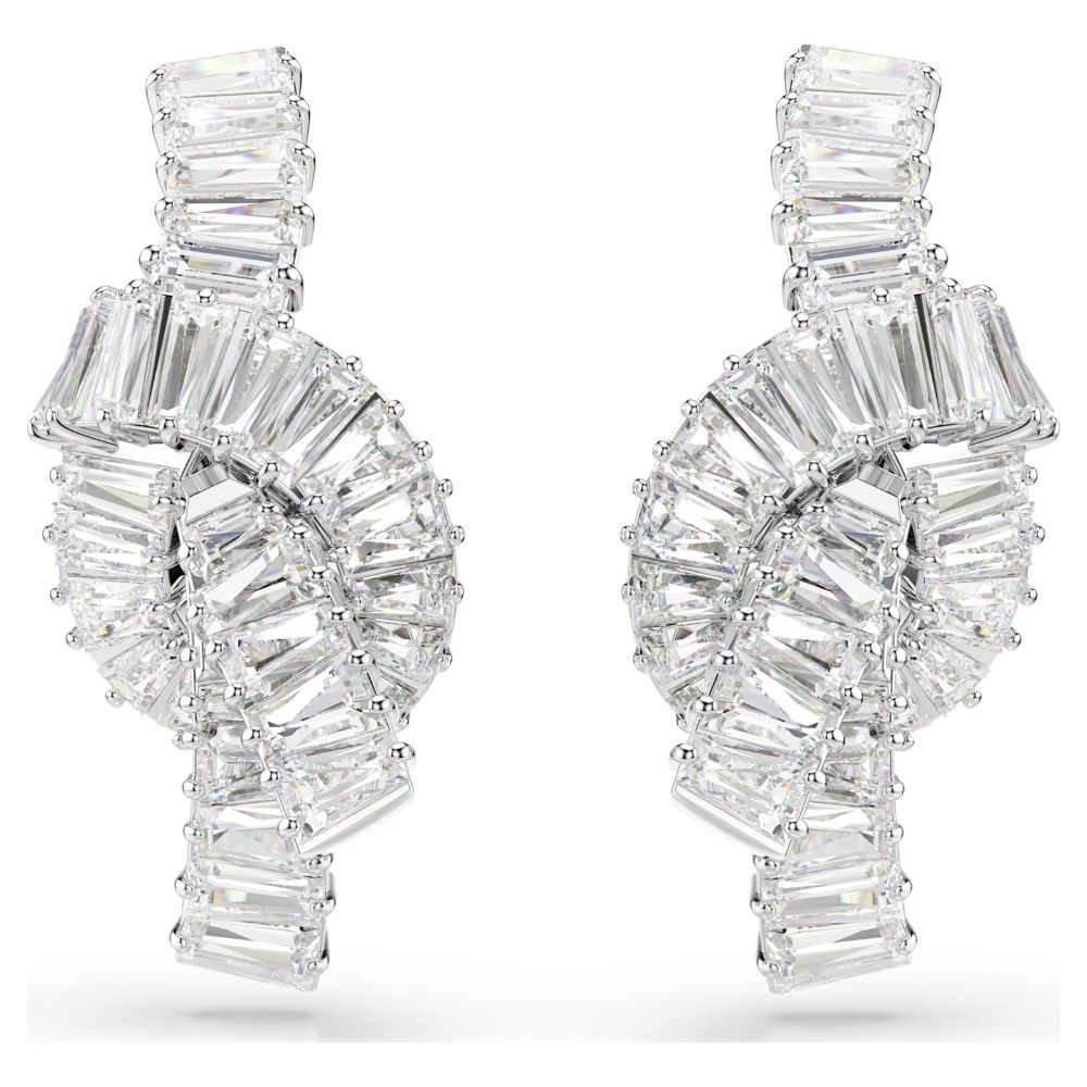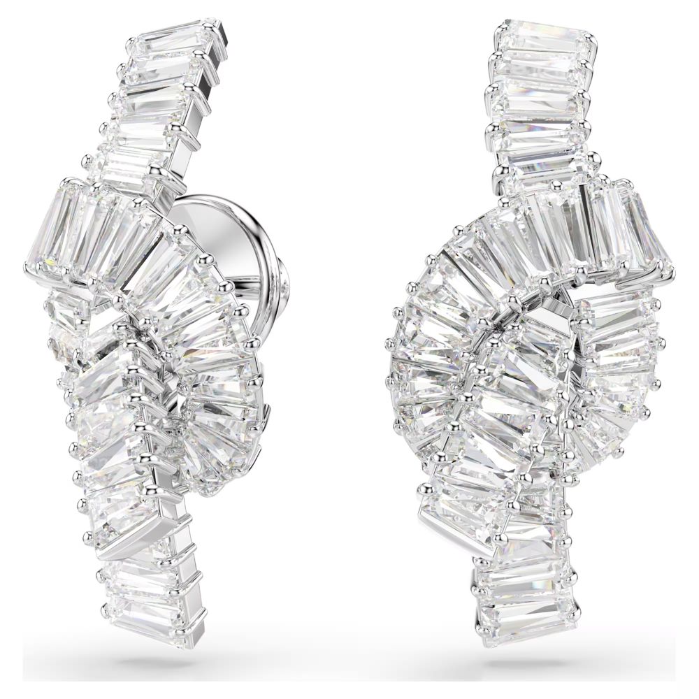 Simbolo di un legame indissolubile, questi orecchini Matrix presentano un esclusivo design intrecciato. Ispirato alla forma di un nastro, ciascun motivo ritorto è placcato rodio e presenta una sofisticata decorazione di Swarovski Zirconia taglio Baguette con montatura a griffe. Scegli questi orecchini quando l’occasione richiede raffinatezza e abbinali ai gioielli Matrix coordinati per un look impeccabile.