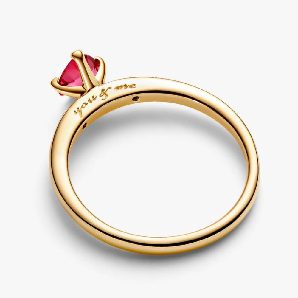 Con un cristallo rosso creato dall'uomo a forma di cuore, questo anello cattura l’essenza dell’amore e dei gesti romantici. Una delicata incisione con il messaggio "you & me" (tu & io) sul lato aggiunge un tocco personal