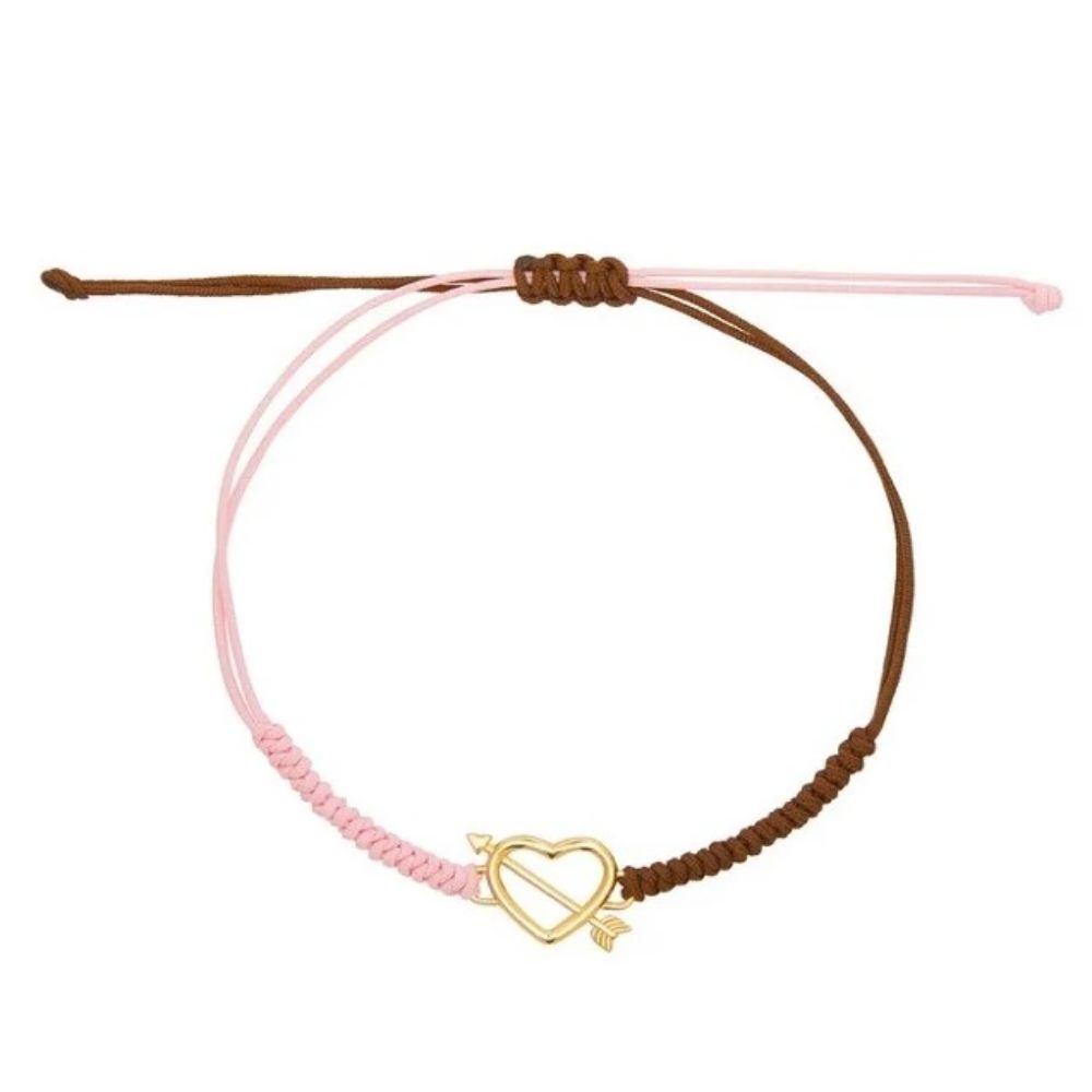 Cavigliera donna valentina ferragni, DVF-CAV-10, collezione lola, Cavigliera- Bracciale Realizzato in Filo Ecosostenibile di Colore Rosa e Marrone, con Lavorazione Scooby, con Cuore e Freccia al Centro, in Argento Placcato Oro. Misura Regolabile.