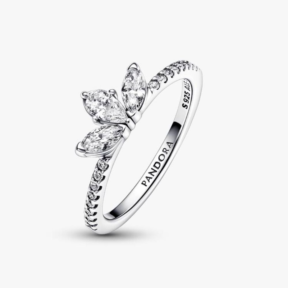 L'anello Herbarium Petali Luminosi presenta tre pietre centrali, una a goccia e due a marquise. Realizzato in Argento Sterling 925, l’elegante anello si ispira alla bellezza della natura con linee a forma di petalo che n